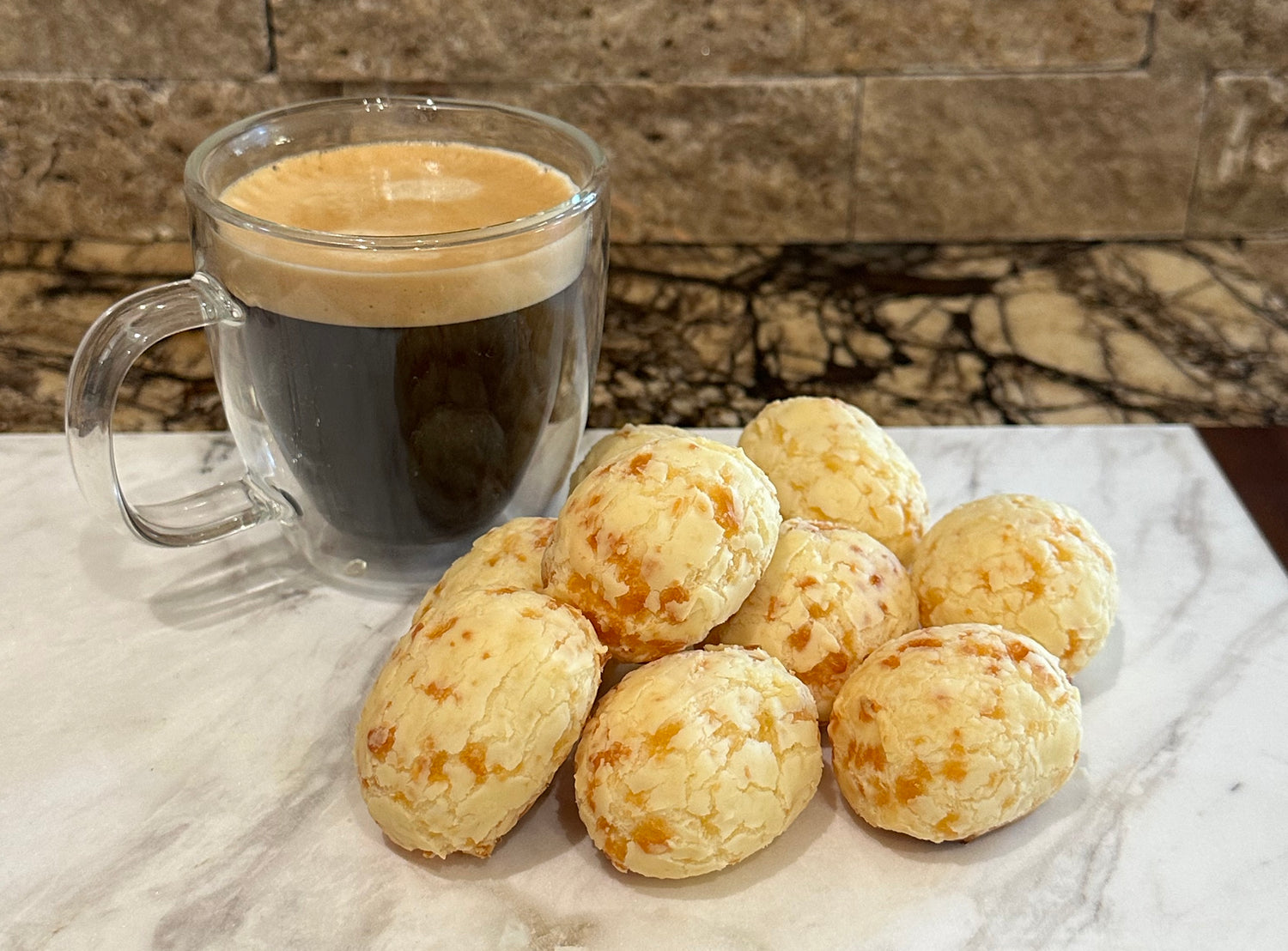 Pão de queijo, a beloved cheese bread, originated in Minas Gerais, Brazil, during the 17th century when settlers experimented with cassava flour due to scarce wheat. The recipe evolved in the 19th century with the addition of local cheeses, like queijo Minas, creating its signature chewy texture and tangy flavor. Today, it’s a cultural staple, enjoyed across Minas Gerais in homes, bakeries, and festivals, symbolizing the region’s rich culinary heritage.
